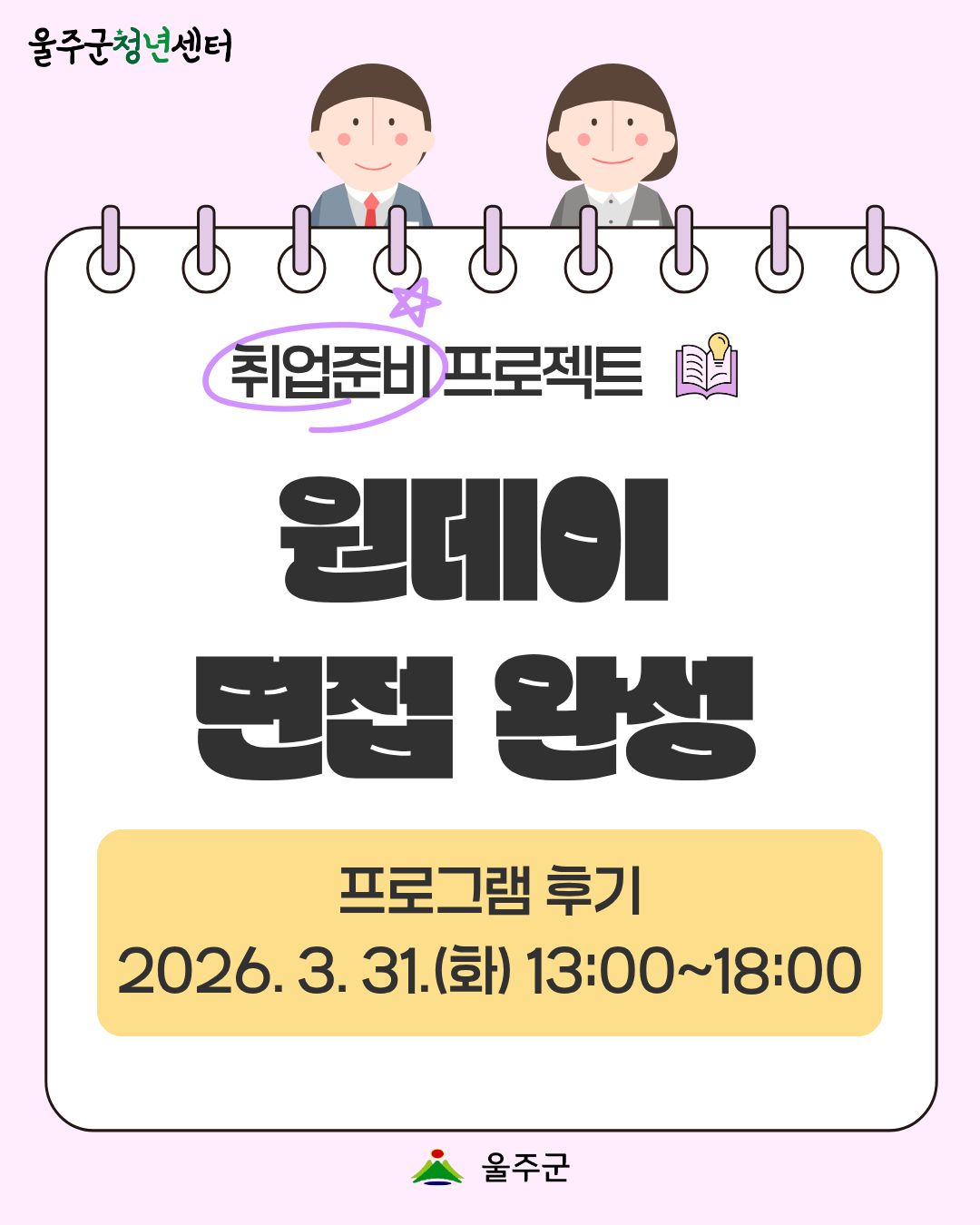 2026. 3. 31.(화) 13:00~18:00 울주군청년센터에서 '원데이 면접 완성' 1차 프로그램을 진행하였습니다.