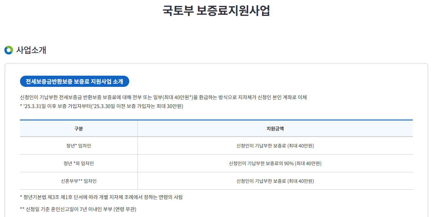 신청 링크 : 소개 | 국토부 보증료지원사업 < 공고/정책홍보 < 전세사기예방센터 < 주택도시보증공사