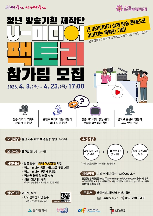 [청년 방송기획 제작단 "U-미디어팩토리" 참여팀 모집]