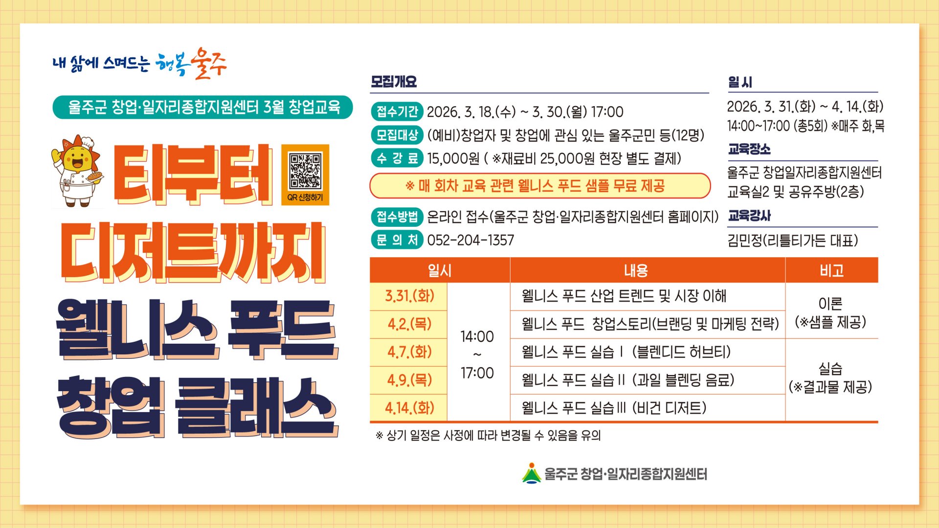 (3월 창업교육)티부터 디저트까지, 웰니스 푸드 창업 클래스 |