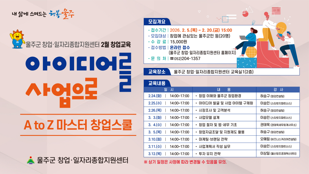 울주군 창업·일자리종합지원센터 내프로그램신청 관련 안내